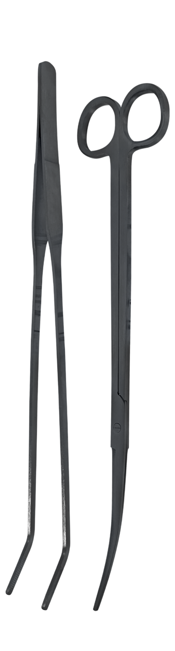 BioArt Scaping Set 2-in-1 – gebogene Pinzette & Schere für Ihr Pflanzterrarium oder Nano Garden. Präzise, ergonomisch & bestens geeignet für feine Pflegearbeiten.