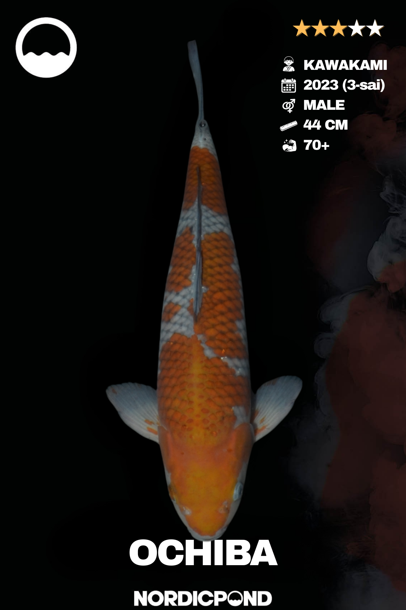 Dieser Ochiba Shigure aus der renommierten Kawakami Koifarm ist ein besonders harmonischer Vertreter dieser beliebten Koi-Varietät. Der Name „Ochiba“ bedeutet übersetzt „herbstliche Blätter auf Wasser“, was die Farbverteilung dieses Koi perfekt beschreibt.