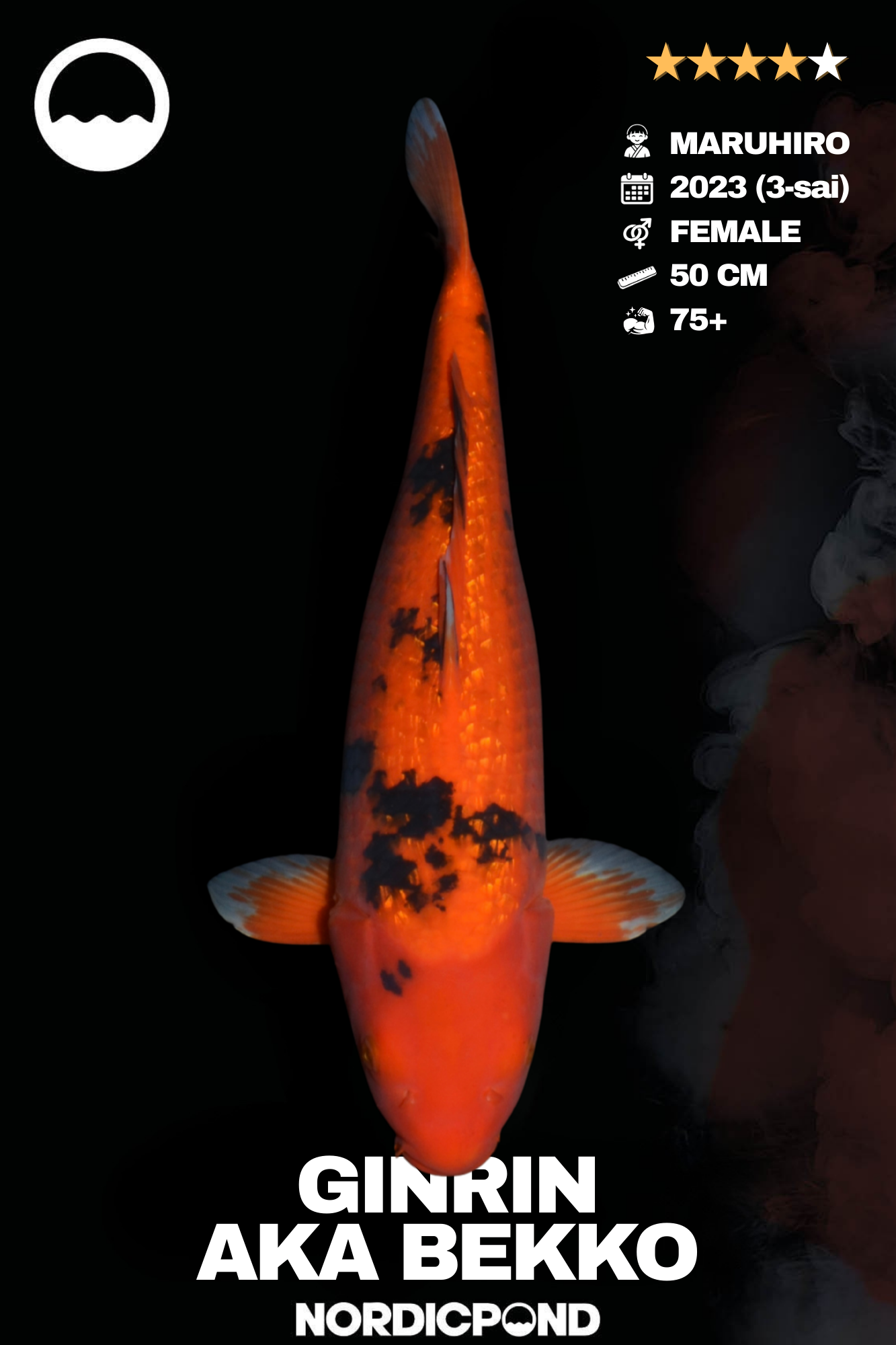 Ginrin Aka Bekko von Maruhiro, Female, 3-sai (2023), ca. 50 cm. Intensives Hi mit sichtbarem Ginrin-Glanz.