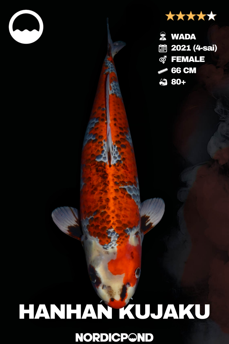 Mit 66 cm Größe, weiblichem Körperbau und sehr guter Substanz zeigt dieser Koi beste Voraussetzungen für weiteres Wachstum. Die Hautqualität wirkt stark und stabil, das Pattern ausgewogen und ausdrucksstark – ein Koi mit klarer Präsenz und hohem Wiedererkennungswert.